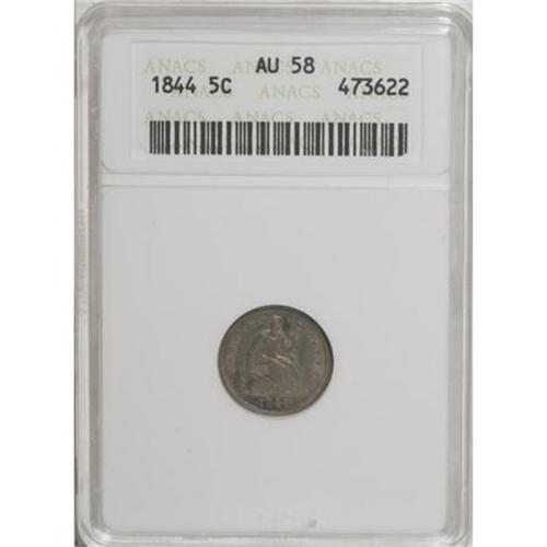 <B>1844 H10C AU58 ANACS.</B></I> V-3. NGC Census: (8/128). PCGS Population (15/87). Mintage: 430,000. Numismedia Wsl. Price for NGC/PCGS coin in AU58: $115. (#4333)<BR><BR><B>Coin Engraver:</B> Christian Gobrecht<BR><BR><b>Shipping:</b> Coins & Currency (<a target="_blank" href="http://www.heritageauctions.com/common/shipping.php">view shipping information</a>)