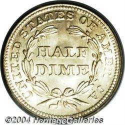 <table><tr><td><table><tr><td>1844 H10C MS67 PCGS. V-3a. The 1 in the date is strongly repunched at the base, while the 8 and first 4 are only lightly recut. Not to be confused with Valentine-3c, which has more dramatic repunching on the initial three digits. The 1844 is a relatively low mintage issue, but is overshadowed by the scarcer, heavily promoted 1844 dime. Light tan-gold patina graces this shimmering Superb Gem. The strike is exemplary, as is the preservation. Struck from a clashed reverse die. Population: 6 in 67, none finer (3/04). <BR><BR><B>Important notice:</B> Heritage usually auctions material at the rate of 200-250 lots per hour. On some occasions eBay Live bid software or the Internet may not be able to keep up with the pace of the auction. We recommend placing a realistic absentee bid now as insurance to avoid disappointment. Occasionally the auctioneer may eliminate or reject an eBay Live bid, and the auctioneer may also reopen a lot after the close of the eBay live bidding (usually because we missed an audience bid), and may reject your bid even if it shows you as the winning bidder. By bidding via eBay Live, you agree that Heritage may award the lot to another bidder at its sole discretion under the circumstances described above or any other reasonable circumstances. Since eBay bids are not shown to us until we open the lot on the floor, we treat those bids just like floor bids. In most cases the floor responds before the eBay bid is presented to us, due to Internet lag time, so for consistency we have made it a policy that floor bids are always considered first over tie eBay live bids. Also please note that all Heritage lots purchased through eBay Live carry a 20% Buyer's Premium. Please make sure you read the Terms and Conditions before you bid. <BR><BR><B>IMPORTANT ANNOUNCEMENT ABOUT RESERVES:</B> Heritage now divulges all reserves on its web site 7 days before every auction. If you want to know whether the reserve on this lot has been met, and if not, what the reserve amount is, please visit this lot page on the HeritageCoin.com web site, or email: bid@HeritageGalleries.com </span></font></td></tr></table></td></tr></table>