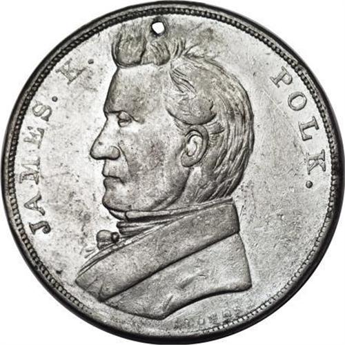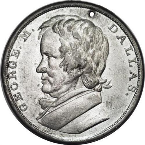 <B>(1844) James Polk/George M. Dallas Political Medal.</B></I> White metal, 41 mm, <B>JP-1844-2,</B></I> Obverse Inscription, <B>James K. Polk;</B></I> bust facing left with Leonard (engraver), under the bust. Reverse inscription, <B>George M. Dallas, </B></I>bust facing left. This is one of the hardest early political medals to obtain.<BR><BR><b>Shipping:</b> Coins & Currency (<a target="_blank" href="http://www.heritageauctions.com/common/shipping.php">view shipping information</a>)