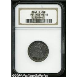 <table><tbody><tr><td><table> <TR><TD width="100%"><TABLE cellSpacing=1 cellPadding=3 width="100%" border=0><TBODY><TR><TD width="100%" bgColor=#79735c><FONT face=arial color=#ffffff size=3><B>Description</B> </FONT></TD></TR><TR><TD width="100%" bgColor=#ffffff><FONT face=arial size=2><B>1844-O 25C MS66 NGC.</B></I> Ex: Pittman. With a sizeable original delivery of 740,000 pieces, the 1844-O is a readily obtainable issue in grades up to and including About Uncirculated. As Southerners saved very few of these coins at the time of their delivery, this specter of commonness fades quickly as one passes into the Mint State grades. While any Uncirculated survivor of this O-mint issue should be considered a rare find, the present Gem is in a class all its own. Sharply impressed by New Orleans mint standards, every star centril, hair feature, and feather detail rises powerfully above the nicely mirrored fields. While the pristine surfaces do full justice to the respected grade designation, we call attention to a small abrasion on Liberty's cheek and a rim cut above the first A in AMERICA that should be of obvious importance for pedigree purposes. Mottled steel-gray, lilac, and charcoal patination rounds out the memorable eye appeal of this solid Condition Census example. To date, this is the single finest specimen certified by either NGC or PCGS (11/03).<BR><I>Ex: Walrath Collection (Numismatic Gallery, 5/48), lot 475; Pittman Collection (David Akers, 5/98), lot 1311, where it realized $3,300; September 1998 Long Beach Sale (Heritage, 9/98), lot 6653; 1999 FUN Sale (Heritage, 1/99), lot 6597, where it realized $5,865; 1999 E-Fair Premier Sale (Heritage, 10/99), lot 5230, where it realized $4,800.</B></I><BR><I>From The Dr. Robert Wharton Collection.</B></I> </FONT></TD></TR></TBODY></TABLE></TD></TR></TBODY></TABLE><BR><A name=PricesRealized></A><TABLE cellSpacing=0 cellPadding=0 width="100%" bgColor=#000000 border=0><TBODY><TR><TD width="100%"><TABLE cellSpacing=1 cellPadding=3 width="100%" border=0><TBODY><TR><TD width="100%" bgColor=#79735c><A name=PR><FONT face=arial color=#ffffff size=3><B>Previous Prices from Heritage Auctions</B> </FONT></A></TD></TR><TR><TD bgColor=#f6f6ed><TABLE cellSpacing=0 cellPadding=0 width="100%" border=1><TBODY><TR><TD align=middle width="33%"><B>Date</B></TD><TD align=middle width="33%"><B>Service</B></TD><TD align=middle width="33%"><B>Price</B></TD></TR><TR bgColor=whitesmoke><TD width="33%"><B>01/08/1999</B></TD><TD width="33%">NGC</TD><TD width="33%">$5,865.00</TD></TR></TBODY></TABLE></TD></TR><TR><TD bgColor=#ffffff><FONT face=arial size=1 ?>PLEASE NOTE: All prices realized reflect the final hammer price PLUS the buyer's premium in auctions that charge a buyer's premium. Each item has a notation at the top of the listing indicating whether that lot included a buyer's premium. Example: A item that sells with a final hammer price of $100 and a 20% buyer's premium will display with a price realized of $120. All information listed is intended to be as accurate as possible, but errors are possible. Please use this guide carefully and inform us of any inaccuracies. </FONT></TD></TR></TBODY></TABLE></TD></TR></TBODY></TABLE><BR><TABLE cellSpacing=0 cellPadding=0 width="100%" bgColor=#000000 border=0><TBODY><TR><TD width="100%"><TABLE cellSpacing=1 cellPadding=3 width="100%" border=0><TBODY><TR><TD width="100%" bgColor=#79735c colSpan=6><FONT face=arial color=#ffffff size=3><B>Price Guide*</B> </FONT></TD></TR><TR bgColor=#f6f6ed><TD align=middle><B>Grade</B> </TD><TD align=middle><B>Coin World<BR>(Trends)</B> </TD><TD align=middle><B>Numismedia<BR>Retail</B> </TD><TD align=middle><B>Numismedia<BR>Wholesale</B> </TD><TD align=middle><B>Coin<BR>Universe</B> </TD><TD align=middle><B>Heritage<BR>Value Index</B> </TD></TR><TR bgColor=#ffffff><TD align=middle>65</TD><TD align=right>---</TD><TD align=right>---</TD><TD align=right>---</TD><TD align=right>---</TD><TD align=right>$4,410.00</TD></TR><TR style="FONT-WEIGHT: bold" bgColor=#cccfdd><TD align=middle>66</TD><TD align=right>---</TD><TD align=right>---</TD><TD align=right>$9,375.00</TD><TD align=right>---</TD><TD align=right>---</TD></TR><TR bgColor=#ffffff><TD align=middle>67</TD><TD align=right>---</TD><TD align=right>---</TD><TD align=right>---</TD><TD align=right>---</TD><TD align=right>---</TD></TR><TR bgColor=#ffffff><TD colSpan=6><FONT size=1>*All information listed is intended to be as accurate as possible, but errors are possible. No item may be returned or refused based on this information which is provided as a service to our customers. You should contact each pricing source directly to determine the accuracy of this information. </FONT></TD></TR></TBODY></TABLE></TD></TR></TBODY></TABLE><BR><TABLE cellSpacing=0 cellPadding=0 width="100%" bgColor=#000000 border=0><TBODY><TR><TD width="100%"><TABLE cellSpacing=1 cellPadding=3 width="100%" border=0><TBODY><TR><TD width="100%" bgColor=#79735c><FONT face=arial color=#ffffff size=3><B>Population Guide</B> </FONT></TD></TR><TR bgColor=#ffffff><TD align=middle><!-- Begin Output of Population Grid--><TABLE cellSpacing=0 cellPadding=0 width="100%" border=0><TBODY><TR><TD vAlign=center><TABLE cellSpacing=0 width="100%" border=1 cellsadding="3"><TBODY><TR><TD vAlign=center><TABLE cellSpacing=0 cellPadding=3 width="100%" border=1><TBODY><TR><TD vAlign=center align=middle bgColor=#f0f1e8 colSpan=2 <CENTER><FONT face=Arial size=2><B>PCGS Pop </B></FONT><CENTER></CENTER></TD><TD vAlign=center align=middle bgColor=#f0f1e8 colSpan=2><CENTER><FONT face=Arial size=2><B>NGC Pop</B></CENTER></FONT></TD></TR><TR><TD vAlign=center><FONT face=Arial size=2>(66)</FONT> </TD><TD vAlign=center align=right><FONT face=Arial size=2>0</FONT> </TD><TD vAlign=center><FONT face=Arial size=2>(66)</FONT> </TD><TD vAlign=center align=right><FONT face=Arial size=2>1</FONT> </TD></TR><TR><TD vAlign=center><FONT face=Arial size=2>(>66)</FONT> </TD><TD vAlign=center align=right><FONT face=Arial