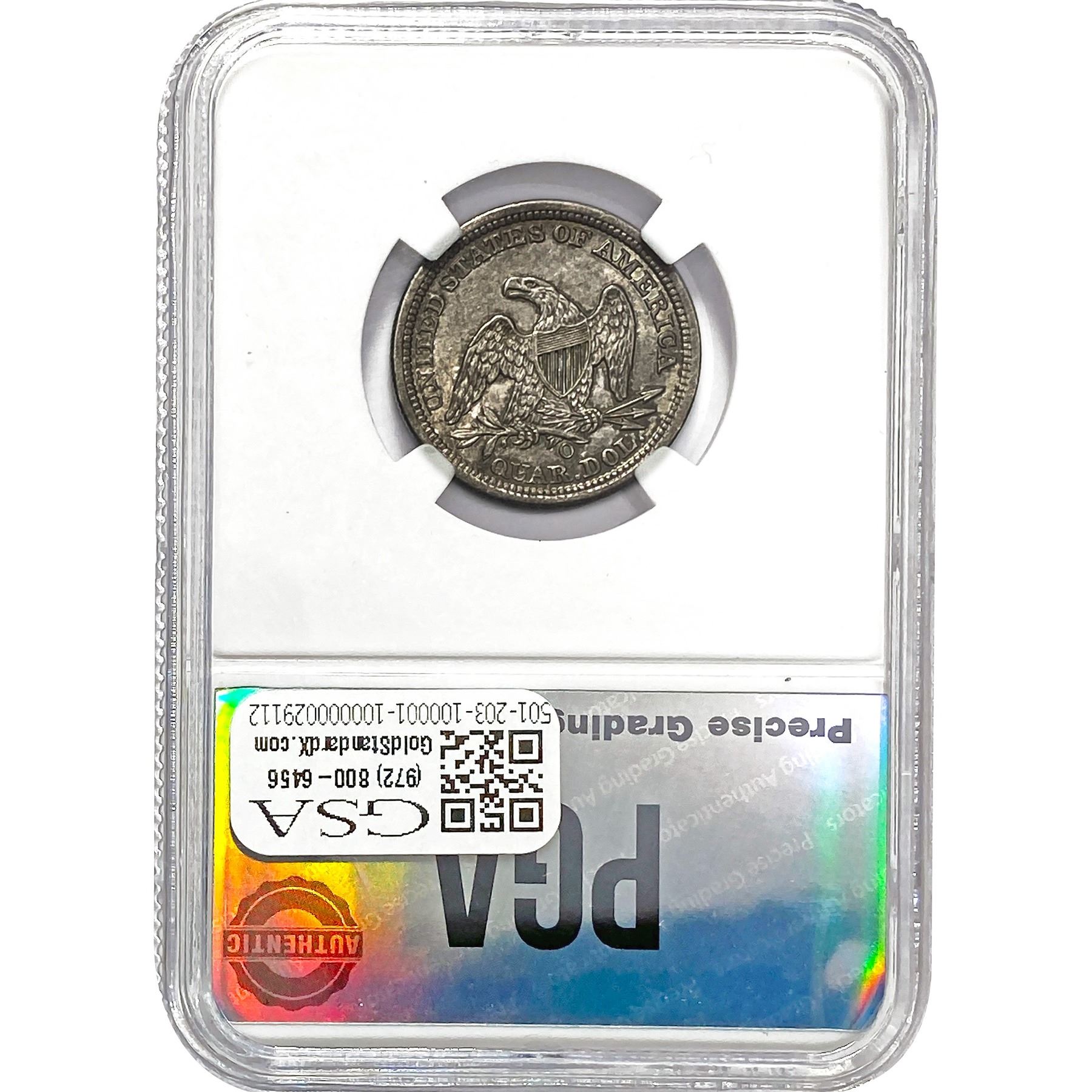 e. Coins sold referencing a third-party grading service are sold “AS IS” without any express or implied warranty, except for a guarantee by GSA that they are genuine. Removal or alteration of the holder, voids all of Bidder’s claims concerning that Product. Certain warranties may be available from the grading services and Bidders are referred to them for further details: Numismatic Guaranty Corporation (NGC), PO Box 4776, Sarasota, FL 34230, www.ngccoin.com/services/writtenguarantee.asp; Professional Coin Grading Services (PCGS), PO Box 9458, Newport Beach, CA 92658, www.pcgs.com/guarantee.html; ANACS, 6555 S. Kenton St., Ste. 303, Englewood, CO 80111; and Independent Coin Grading Co. (ICG), 7901 East Bellview, Ave., Suite 50, Englewood, CO 80111.