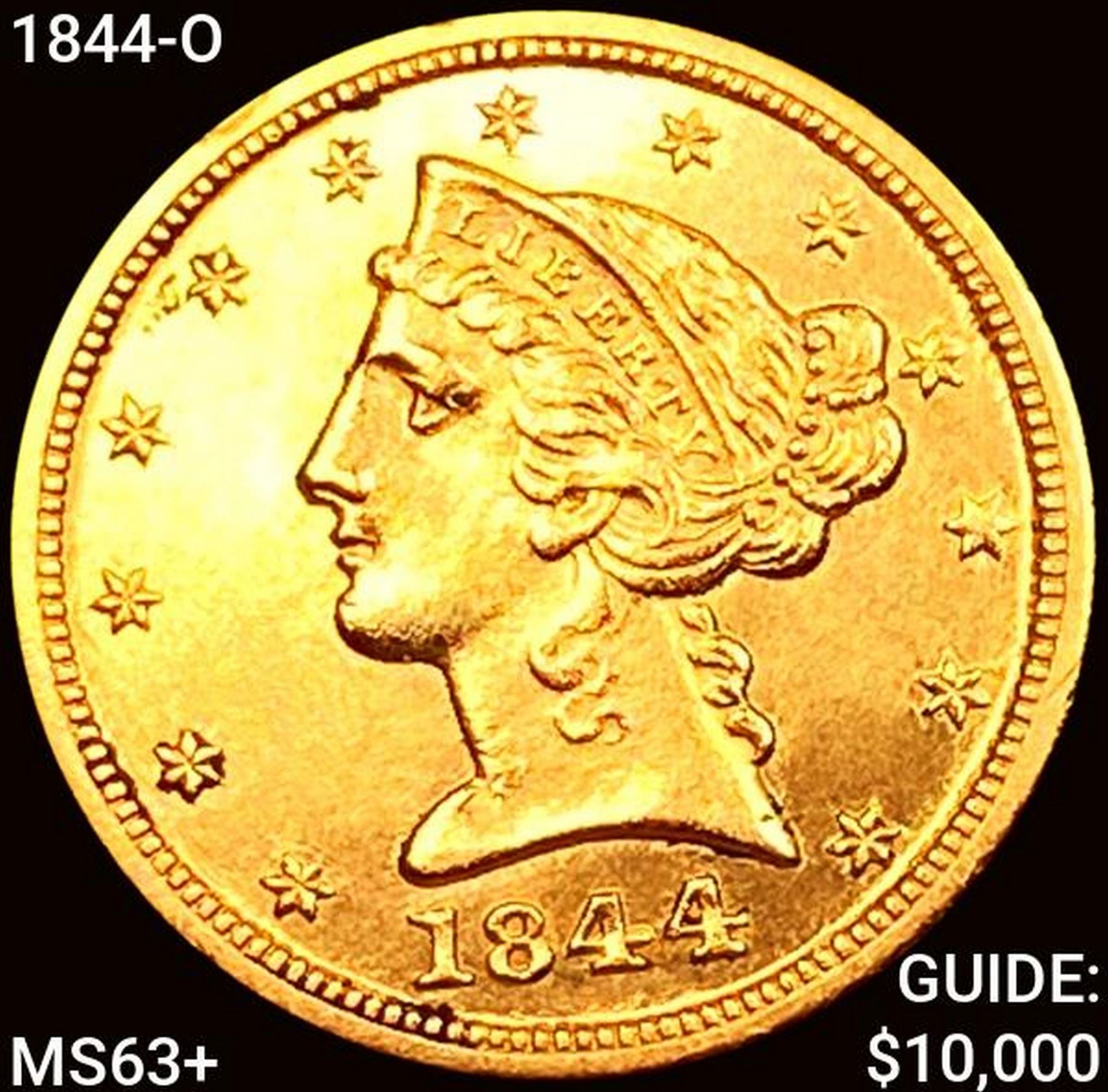 1844-O $5 Gold Half Eagle CHOICE BU+