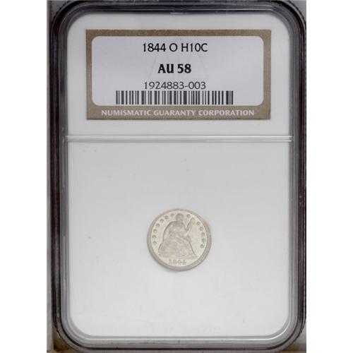 <B>1844-O<H10C> AU58 NGC.</B></I> Light silver with traces of rose color and partially reflective fields. Above average surfaces for the grade, with just a few minor lines and ticks, the strike is a touch soft on portions of the wreath and denomination. Certainly a very rare coin in this lofty grade, and one which any serious date collector would wise to purchase. Census: 3 in 58, 6 finer (1/06).