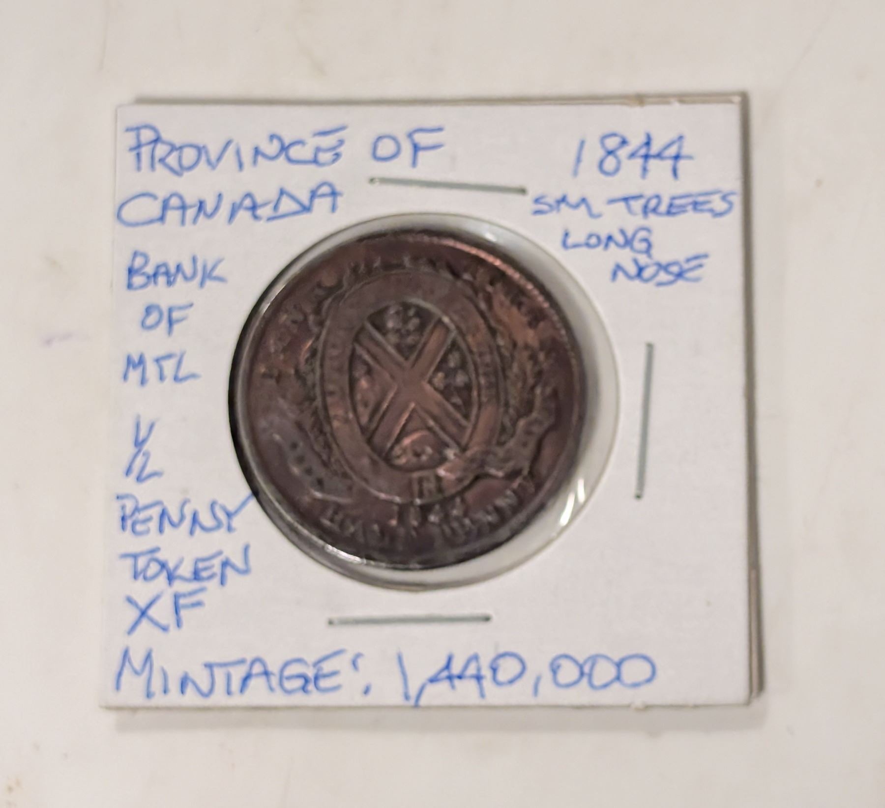 1844 PROV OF CANADA HALF PENNY SM TREES LONG NOSE