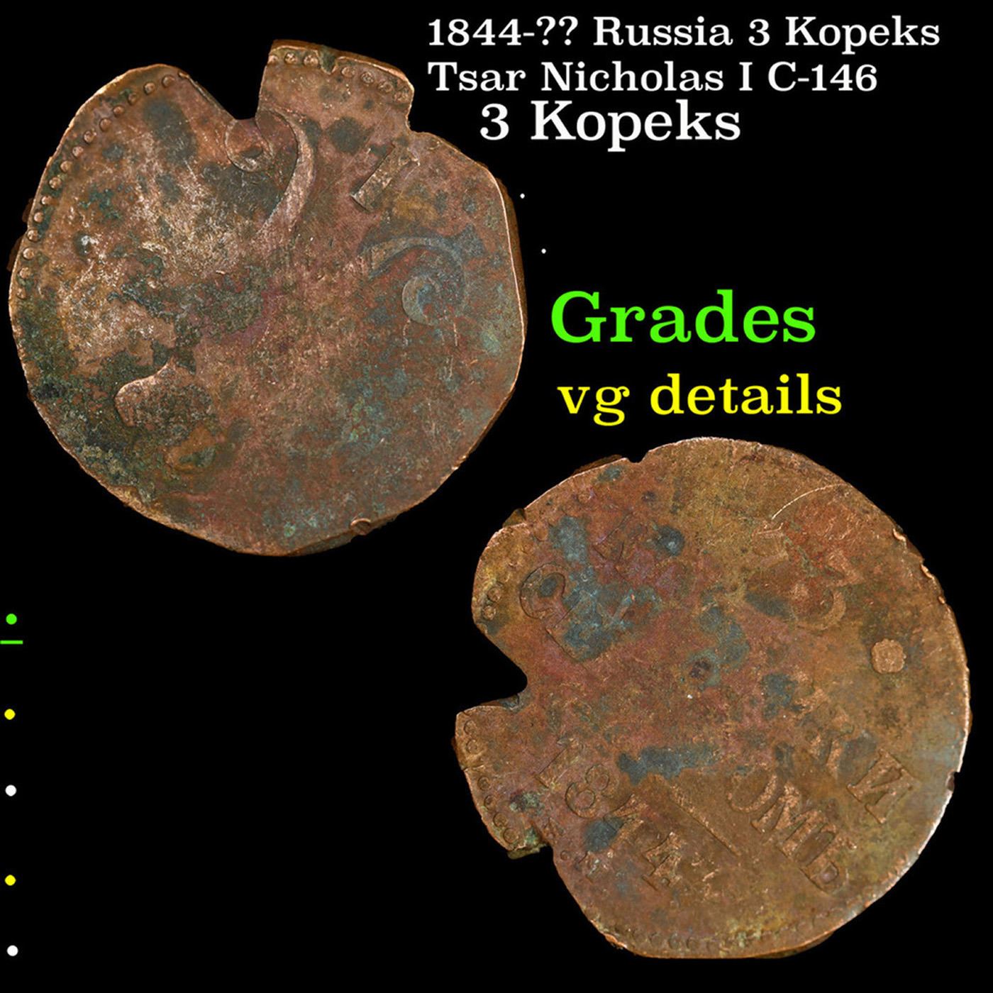 1844-?? Russia 3 Kopeks Tsar Nicholas I C-146 Grades vg details.