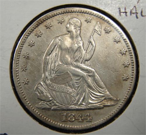 1844 SEATED LIBERTY HALF DOLLAR. AU.