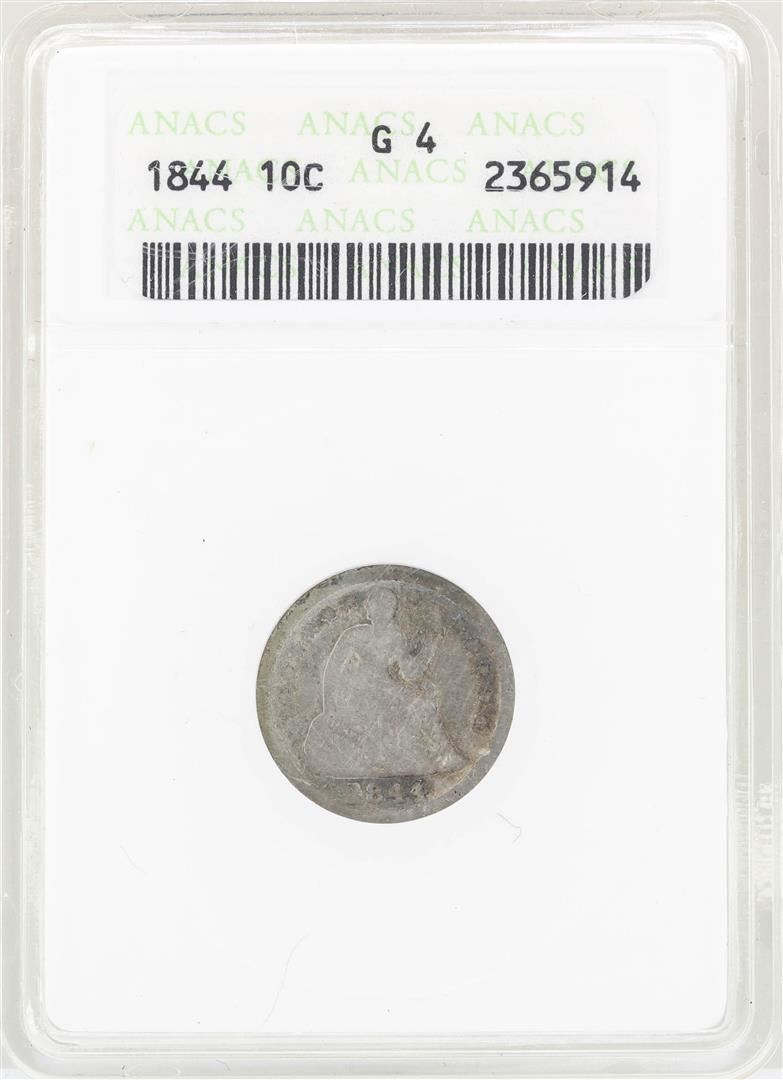One 1844 Seated Dime Coin ANACS G4. PCGS Graded.