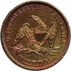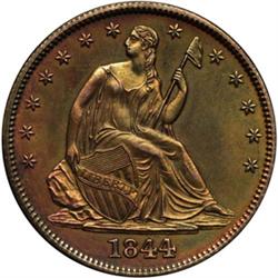 Half Dollars 1844 About Uncirculated 58. <b>Sharply struck. Bright greenish gold and sunset iridescent toning. Struck using a shattered reverse die.</b> <p align="center">Superior Galleries was founded in 1929 and has been a leader in
