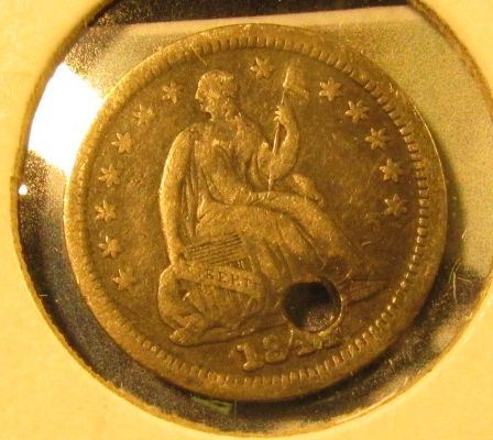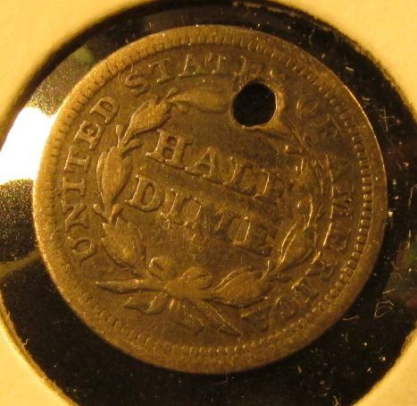 1844 Seated Liberty Half Dime, VF holed, problem free VF value $35, value $15