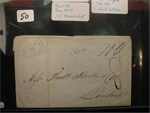 1844 Stampless Cover - New Orleans to London Blue CDS & Paid 100 Ship Letter