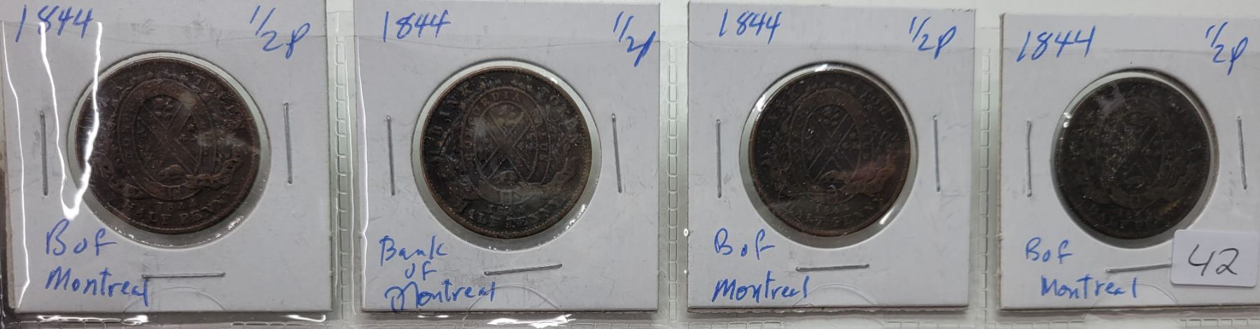 1844 (x4) Bank of Montreal Half Penny Tokens