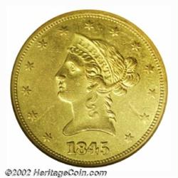 1845 $10 AU55 NGC. The 1845 (26,153 pieces produced) is equally as rare as the lower mintage 1844, t