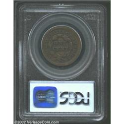 1845 1C Cent--Uncentered Broadstrike--Fine 12 PCGS. A wide lip of extra flan is seen on the lower right portion of the obverse and corresponding area on the reverse. Evenly worn with medium brown patina and darker accents around the devices. Important notice: We expect to be auctioning lots at the rate of 200-250 per hour. Sometimes eBay Premier live bid software cannot keep up with that pace, so we strongly recommend that you place a realistic proxy bid now as insurance to avoid disappointment. Also please note that all Heritage/CAA lots purchased through eBay Premier carry a 20% Buyer's Premium. Please make sure you read the Terms and Conditions.