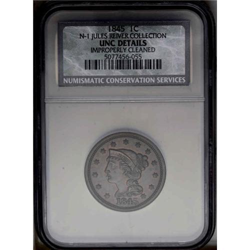 1845 1C N-1, R.4--Improperly Cleaned--NCS. Unc Details 1845[1C] N-1, R.4--Improperly Cleaned--NCS. U