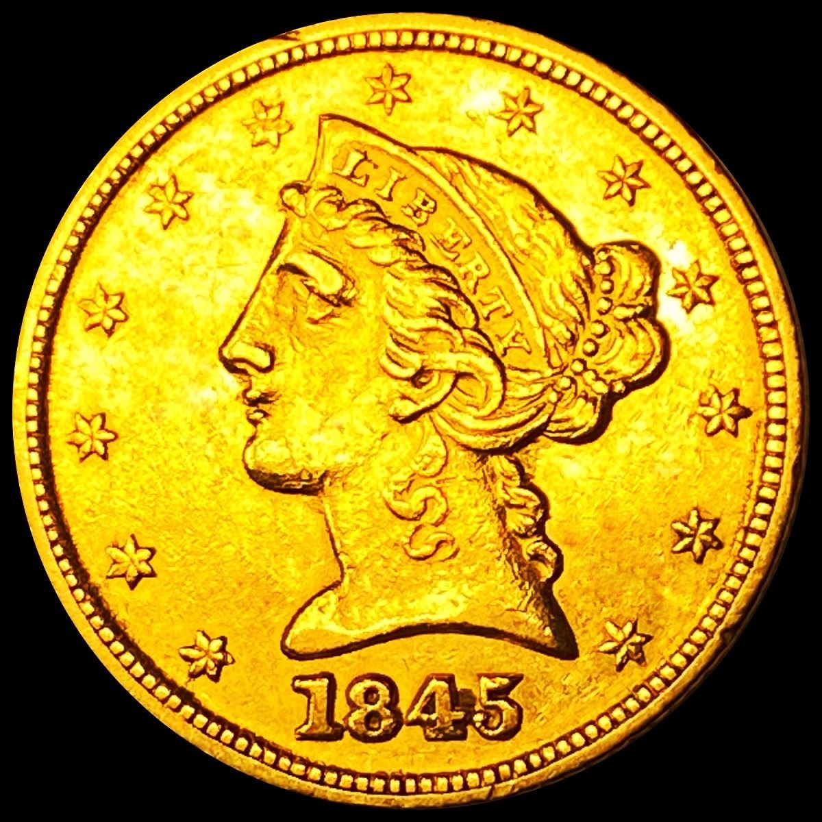 1845 $5 Gold Half Eagle - HIGH GRADE
