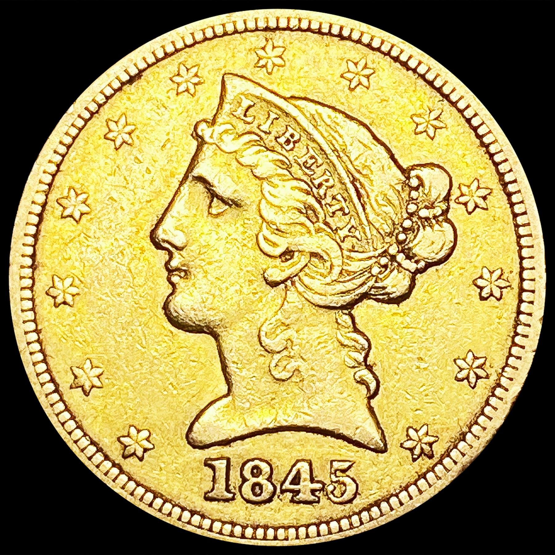 1845 $5 Gold Half Eagle NEARLY UNCIRCULATED