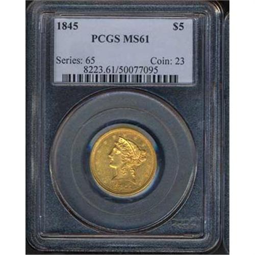 1845 5 Gold Liberty PCGS MS61 Coin
