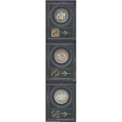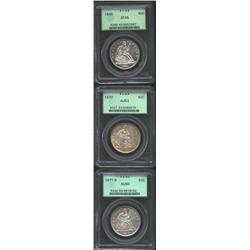 1845 50C XF45 PCGS, lightly toned with a speck of darker color above the eagle's beak; 1870 AU53 PCGS, nicely and originally toned with good luster remaining around the devices; and an 1871-S AU50 PCGS, slate-gray surfaces.From the Ohio Collection. 3 coins Important notice: We expect to be auctioning lots at the rate of 200-250 per hour. Sometimes eBay Premier live bid software cannot keep up with that pace, so we strongly recommend that you place a realistic proxy bid now as insurance to avoid disappointment. Also please note that all Heritage/CAA lots purchased through eBay Premier carry a 20% Buyer's Premium. Please make sure you read the Terms and Conditions.