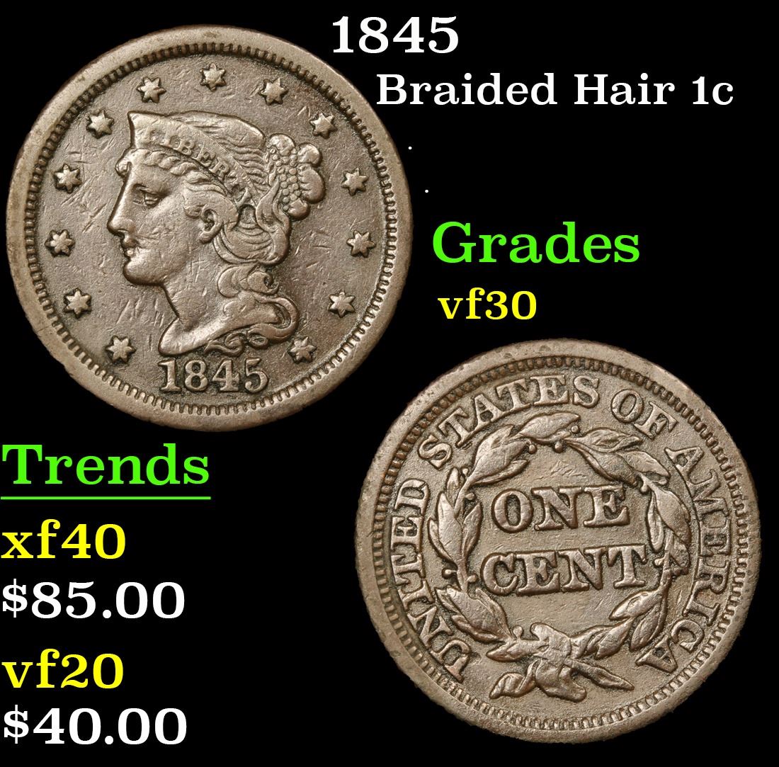 1845 Braided Hair Large Cent 1c Grades vf++.