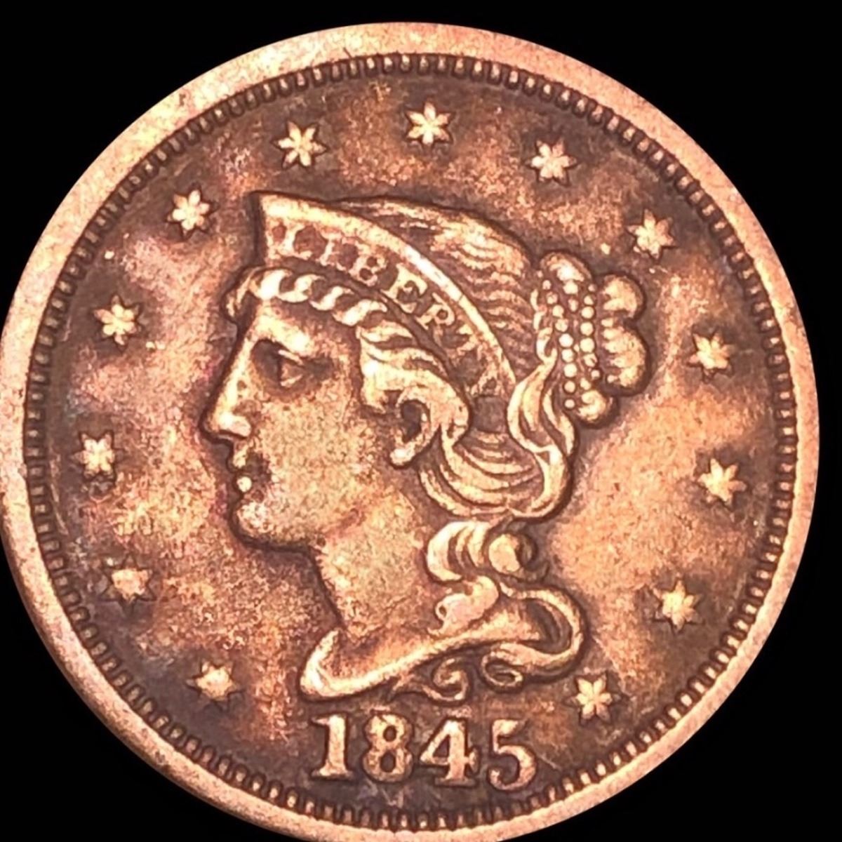 1845 Braided Hair Large Cent ABOUT UNCIRCULATED
