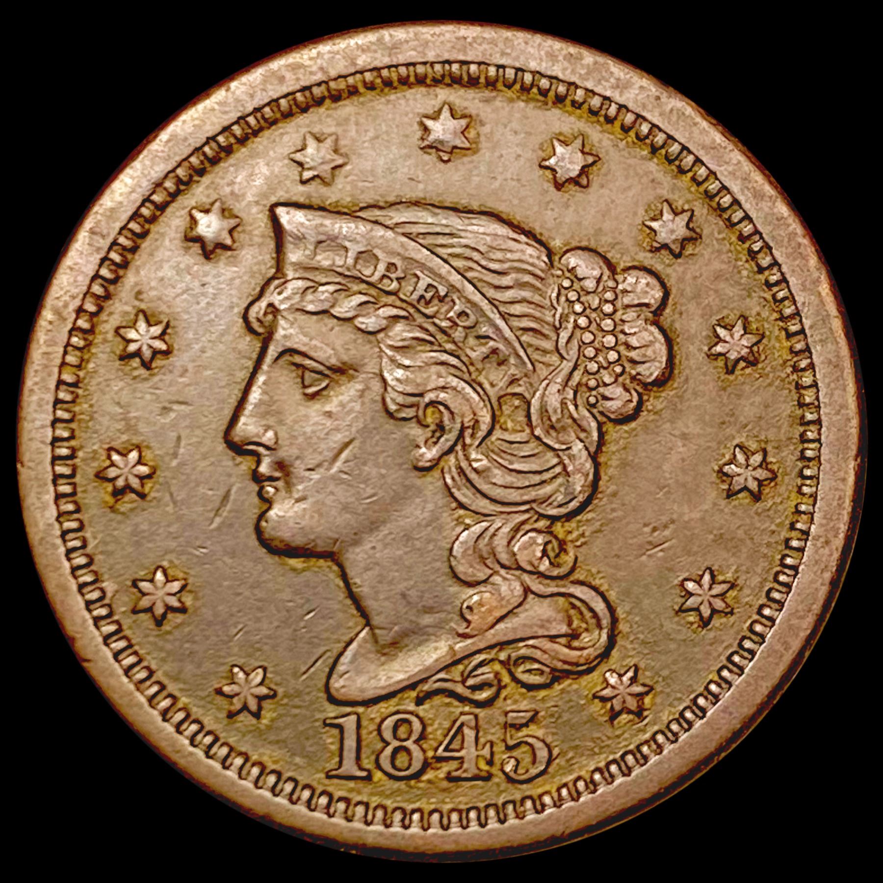 1845 Braided Hair Large Cent CLOSELY UNCIRCULATED