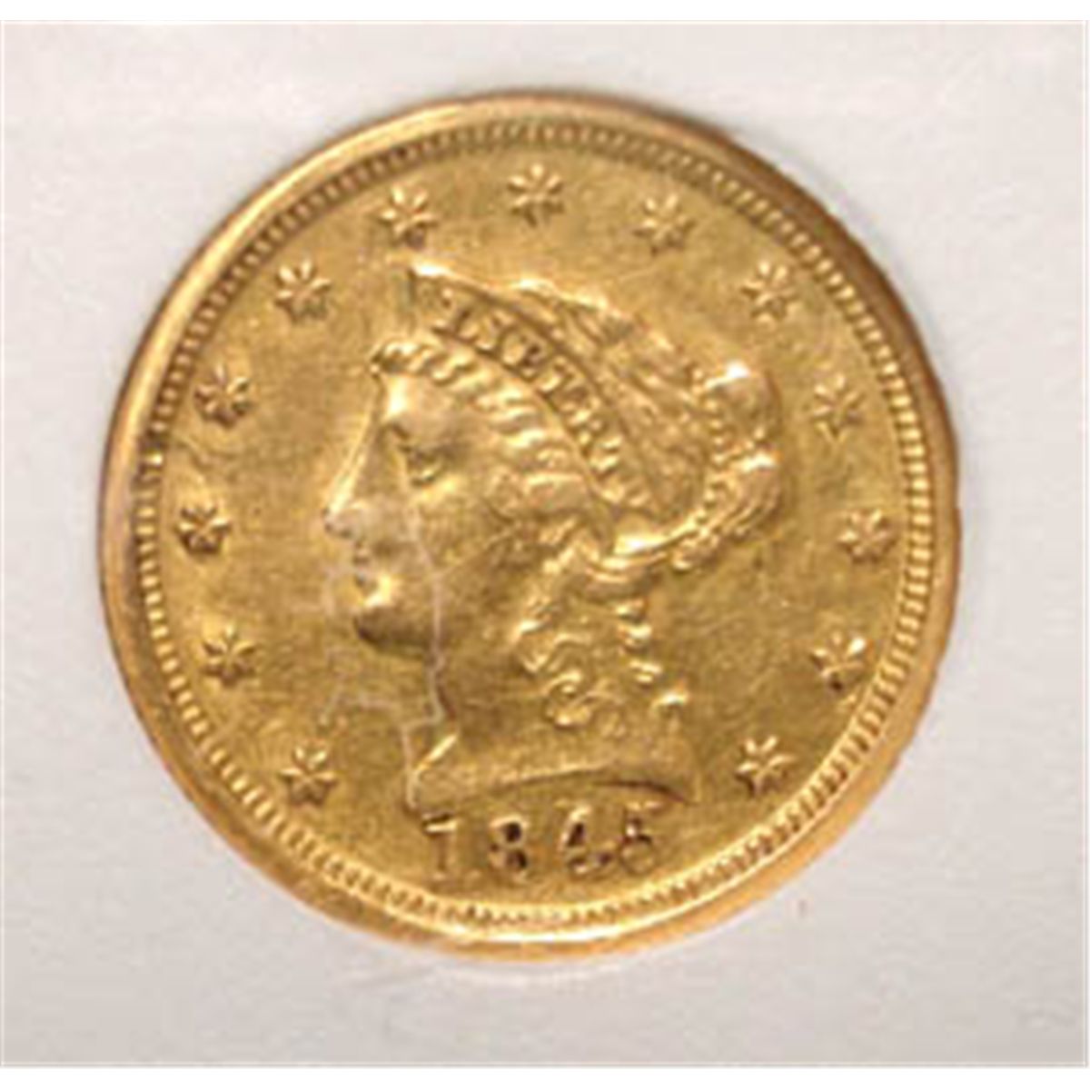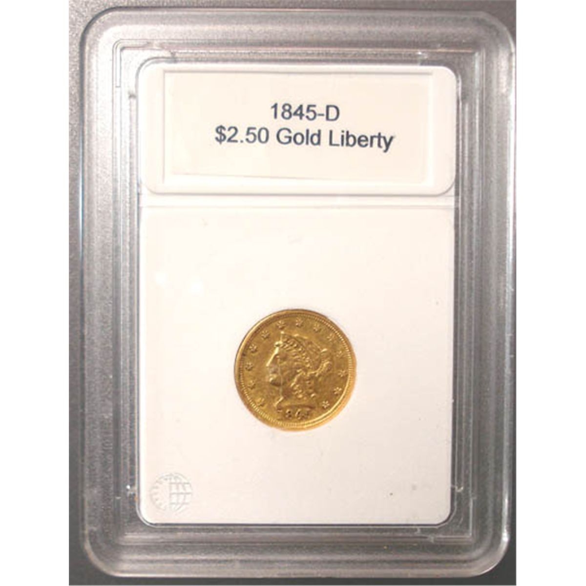 1845-D $2.50 LIBERTY GOLD, XF/AU Rare Date- small nick