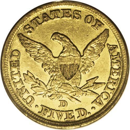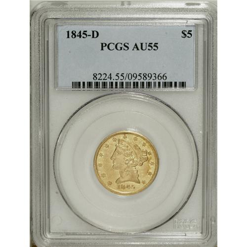 1845-D $5 AU55 PCGS. An appealing, lightly circulated