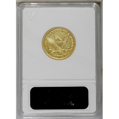 <B>1845-D<$5>--Cleaned--ANACS. AU50 Details.</B></I> Variety 13-I. A lightly worn and nicely struck example with hairlined fields that possess surreal brightness. Two scratches appear in the upper obverse fields, and another runs across Liberty's cheek.