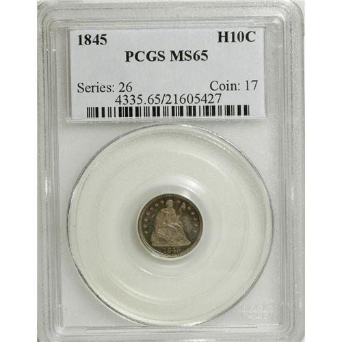 1845 H10C MS65 PCGS. The date is repunched west. A mod