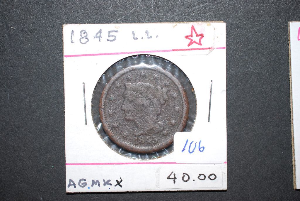 1845 Large One Cent; Large Letters; 13 Stars; EST. $60-80