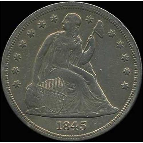 Cleaned but now toning a dull dove-gray color. Only 24,500 minted of the scarcer 1845 issue.