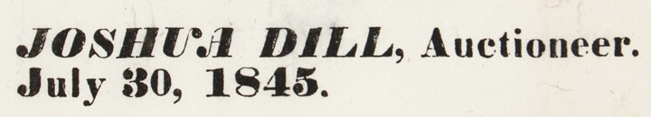 July 30, 1845-Dated, Maryland Slave Auction Printed Broadside, Joshua Dill, Auctioneer, printed by the REPUBLICAN CITIZEN, Very Fine.