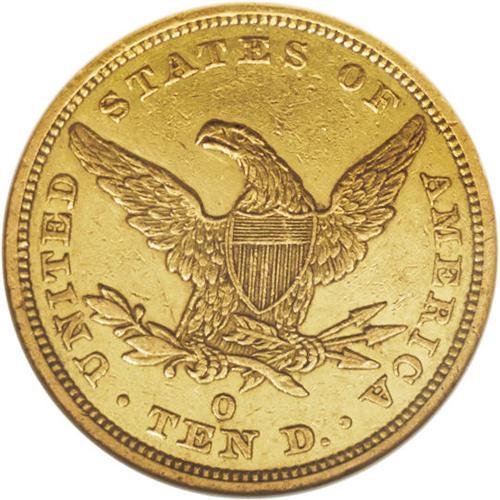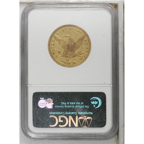 <B>1845-O $10 AU53 NGC.</B></I> The 1845-O is a better New Orleans issue. A scant 47,500 pieces were struck, most of which have been lost to time and the smelter. Luster brightens protected elements of this green-gold representative. Well struck save for a couple of left-side star centers. A pair of tiny obverse rim nicks at 2:30 are of little relevance.<BR><BR><b>Shipping:</b> Coins & Currency (<a target="_blank" href="http://www.heritageauctions.com/common/shipping.php">view shipping information</a>)