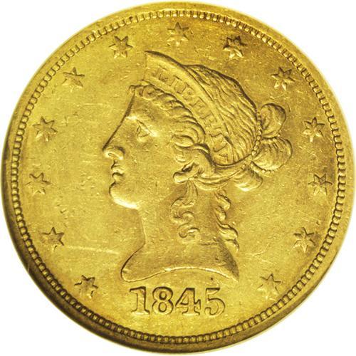 <B>1845-O<$10> AU55 NGC.</B></I> Breen-6869. Repunched 84. A scarcer issue among O-mint eagles from a comparatively small mintage of 47,500 pieces. Survivors generally show at least 15 points of wear. This example is fairly well struck and moderately abraded beneath rich reddish-orange patina. An obverse rim nick at 9 o'clock is visible within the holder. Census: 40 in 55, 22 finer (4/06).