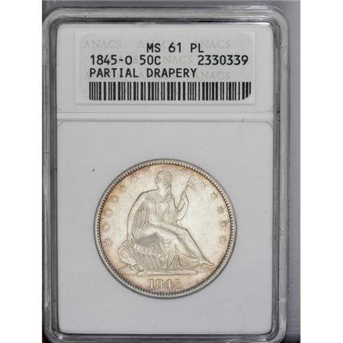 1845-O 50C Partial Drapery MS61 Prooflike ANACS. A pai 1845-O[50C] Partial Drapery MS61 Prooflike AN