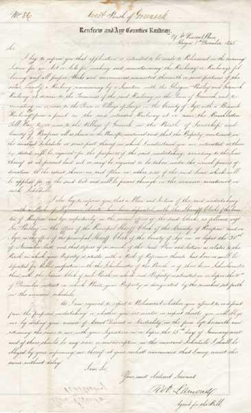 1845: Renfrew and Ayr Railway Counties Railway compulsory purchase order