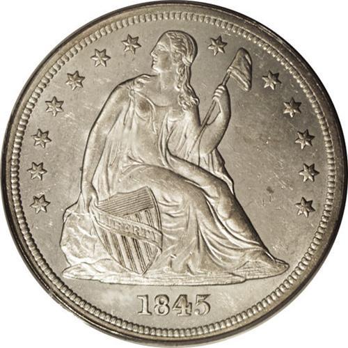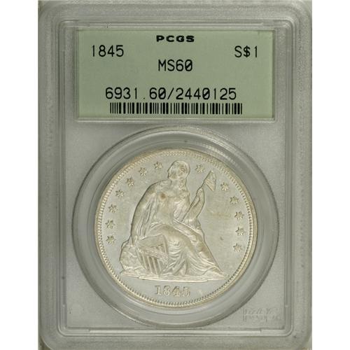 1845 S$1 MS60 PCGS. One of just 24,500 examples coined