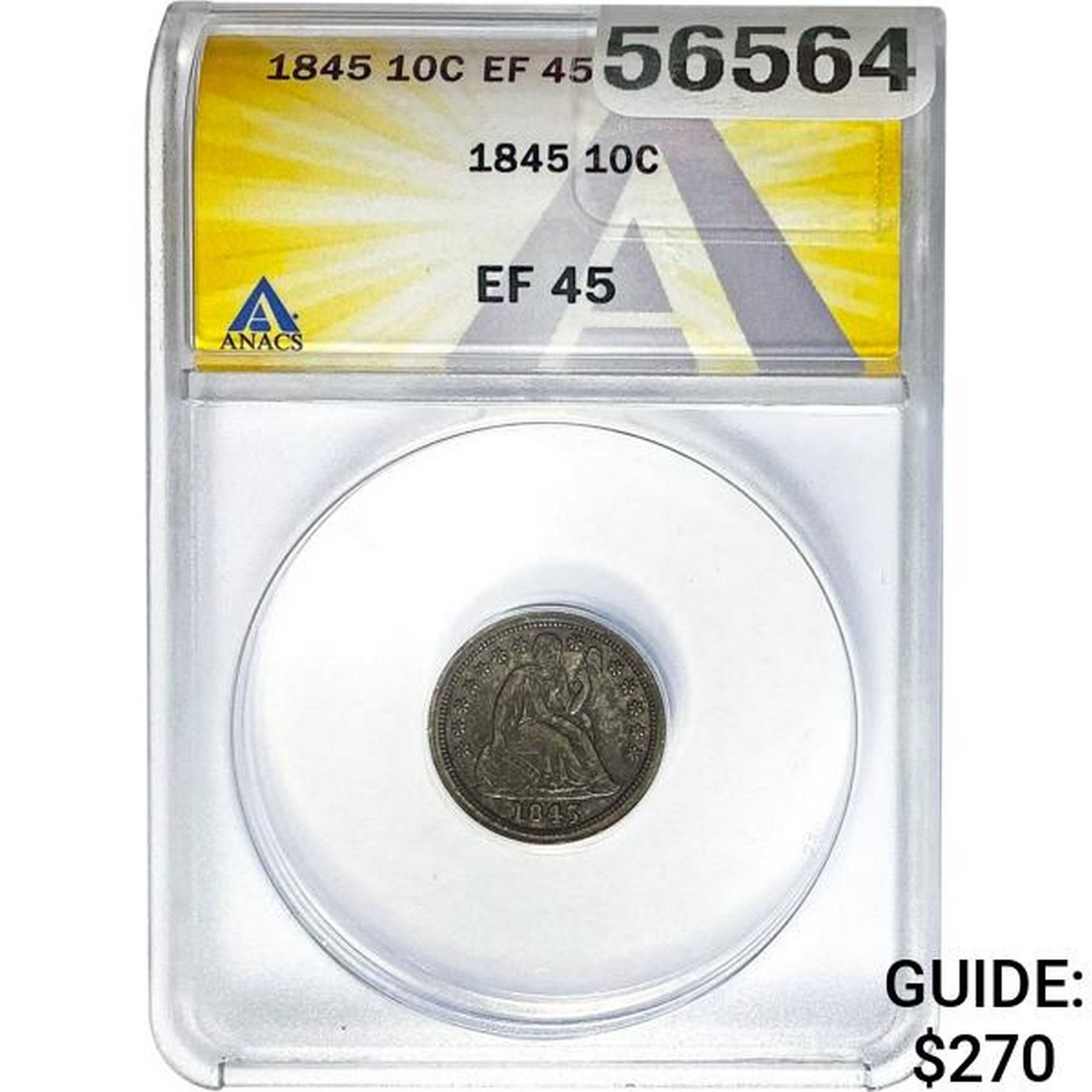 1845 Seated Liberty Dime ANACS EF45