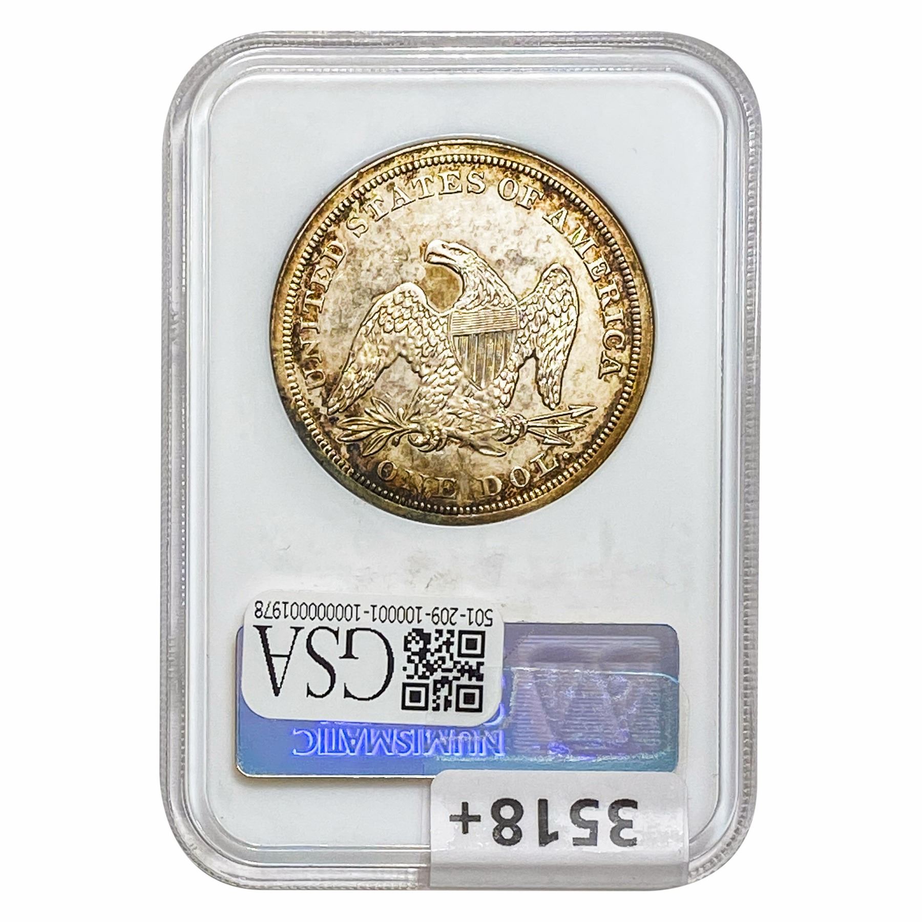 l. All non-certified coins and currency are guaranteed genuine, but are not guaranteed as to grade, since grading is a matter of opinion, an art and not a science, and therefore the description rendered by GSA or any third-party grading service may not agree with the opinion of others (including trained experts), and the same expert may not grade the same item with the same grade at two different times. GSA may, but is not obligated to, express an opinion as to non-certified numismatic items, in GSA’s opinion, or by its employees’ experience and the current interpretation of the American Numismatic Association’s standards as of the date the catalog was prepared. There is no guarantee or warranty expressed or implied that the grading opinions utilized by GSA, if any, will meet the standards of any grading service at any time in the future.