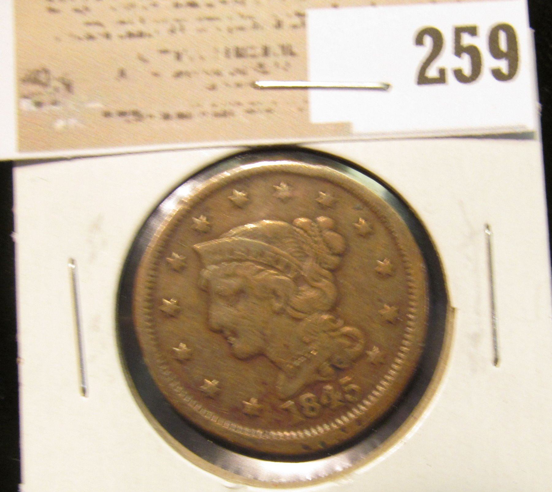 1845 U.S. Large Cent, VF+.