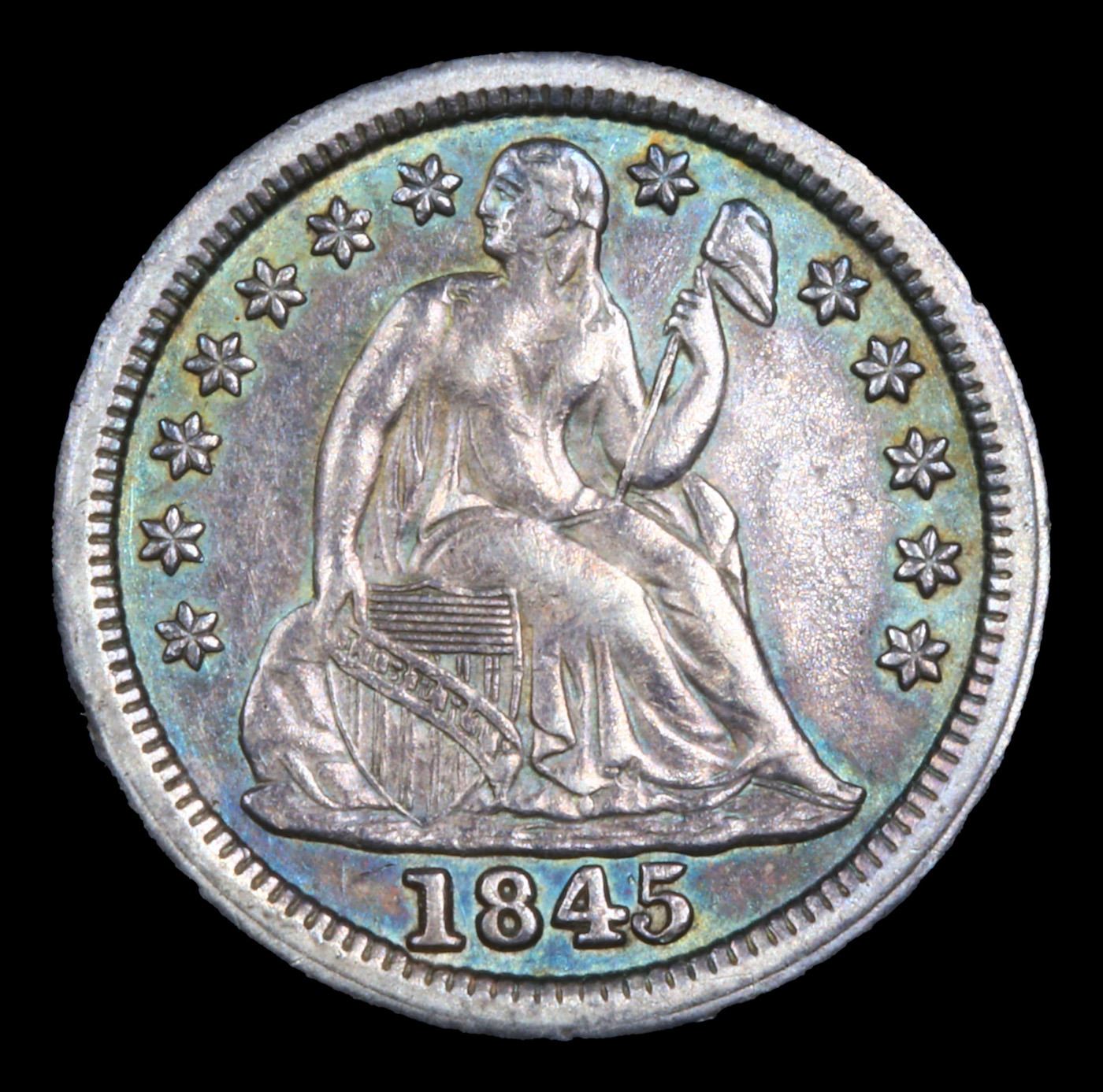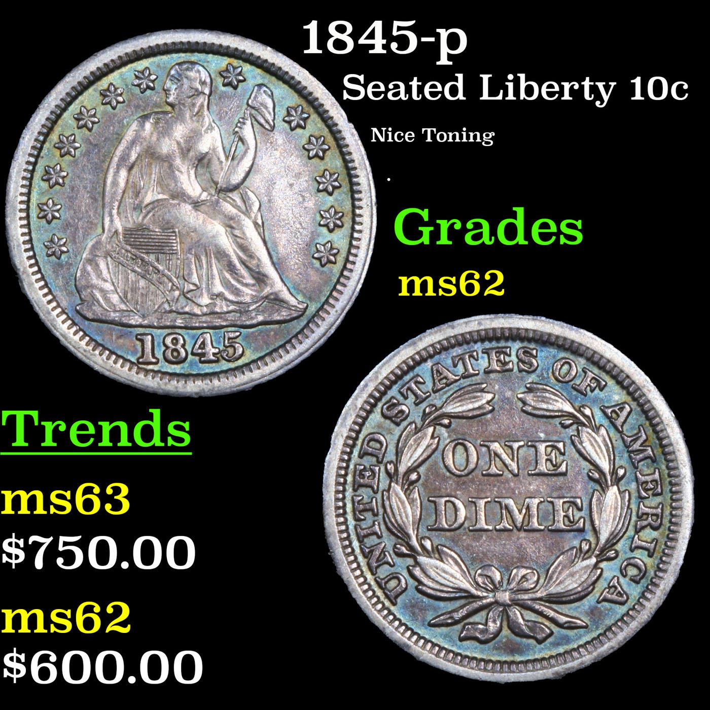 1845-p Seated Liberty Dime 10c Graded ms62 By SEGS. A Key Date's Pick, Bid to Win Coin