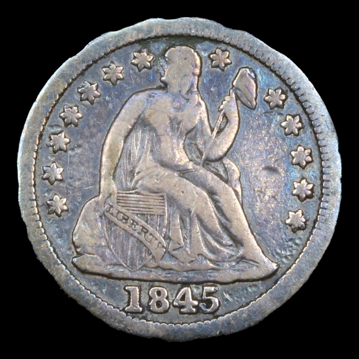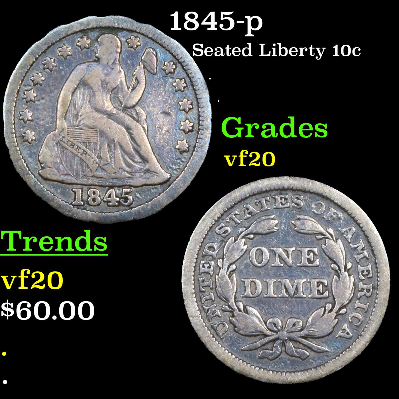 1845-p Seated Liberty Dime 10c Grades vf, very fine.