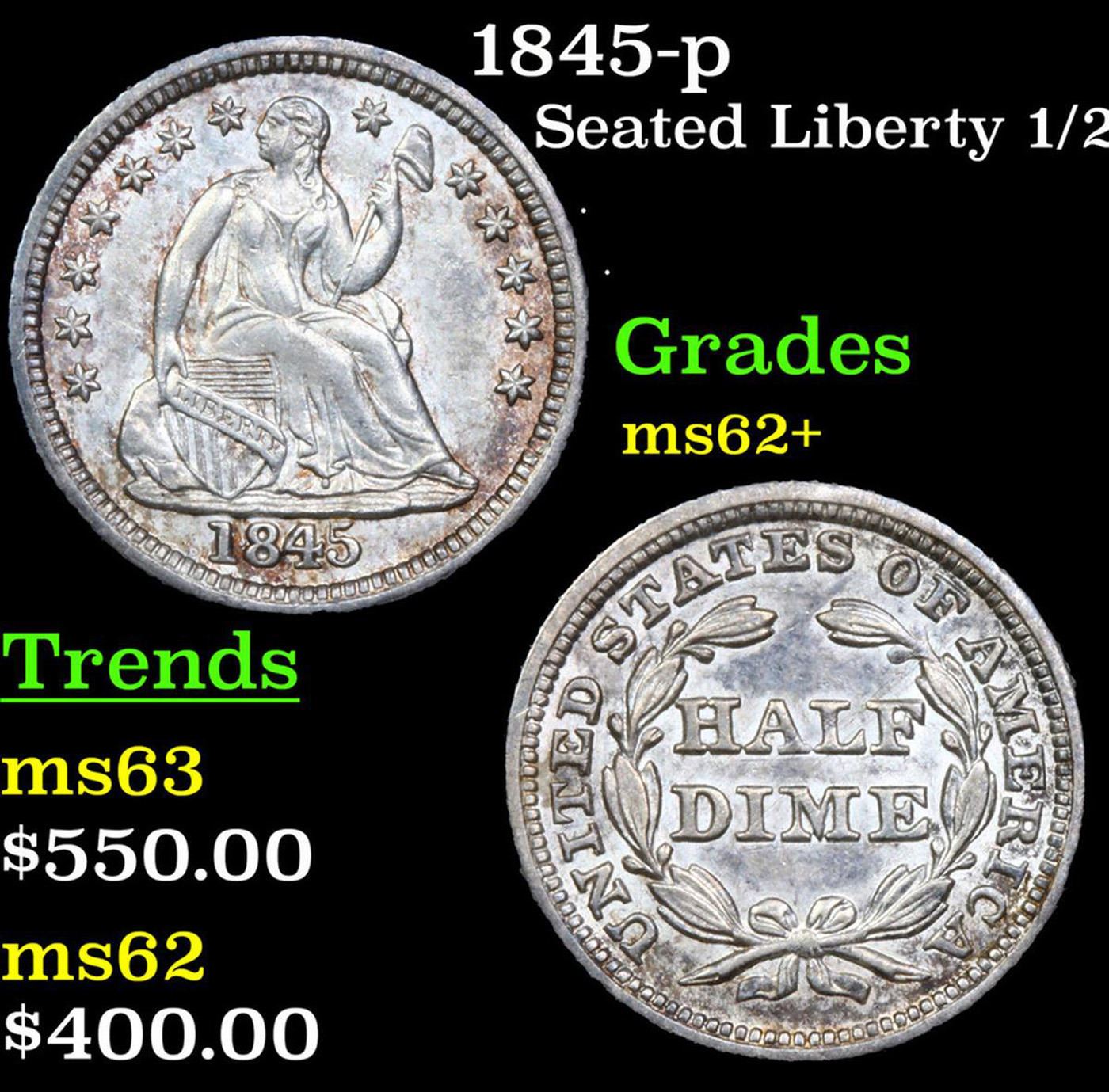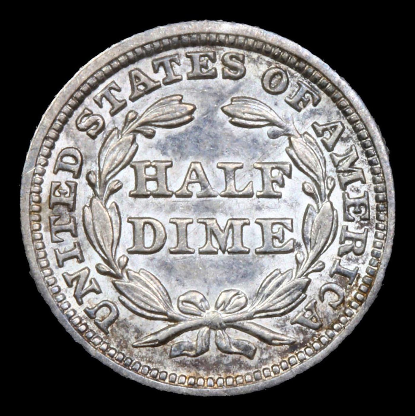 1845-p Seated Liberty Half Dime 1/2 10c Graded ms62+ By SEGS.