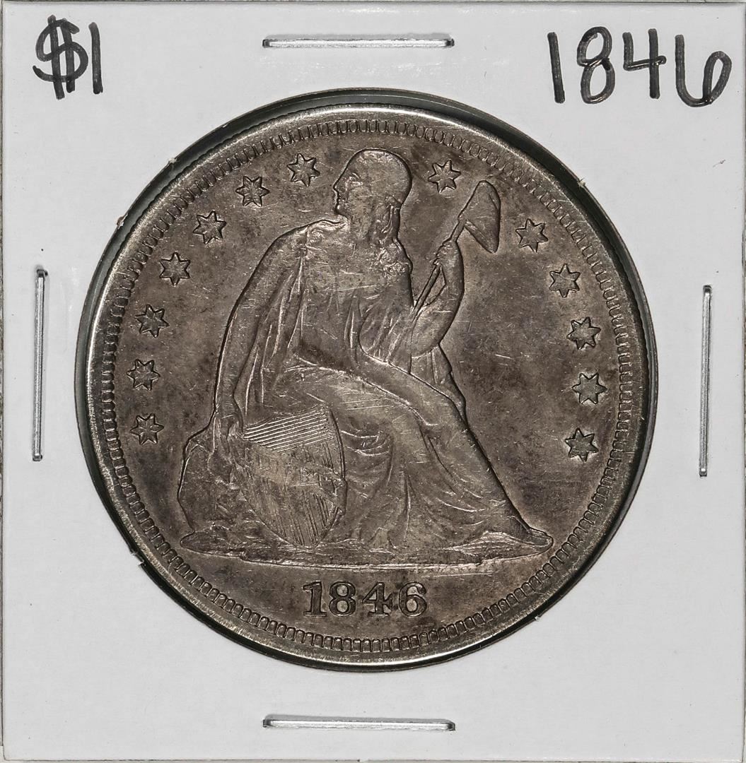 One 1846 $1 Seated Liberty Silver Dollar Coin.