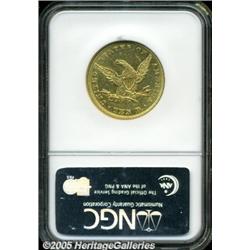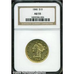 <B>1846 $10 AU55 NGC.</B></I> The eagle's plumage is bold, and bits of reflective luster outline the devices and legends. Numerous minor handling marks show on each side but are of little consequence. A scant 20,095 pieces were struck. Population: 7 in 55, 4 finer (2/05).