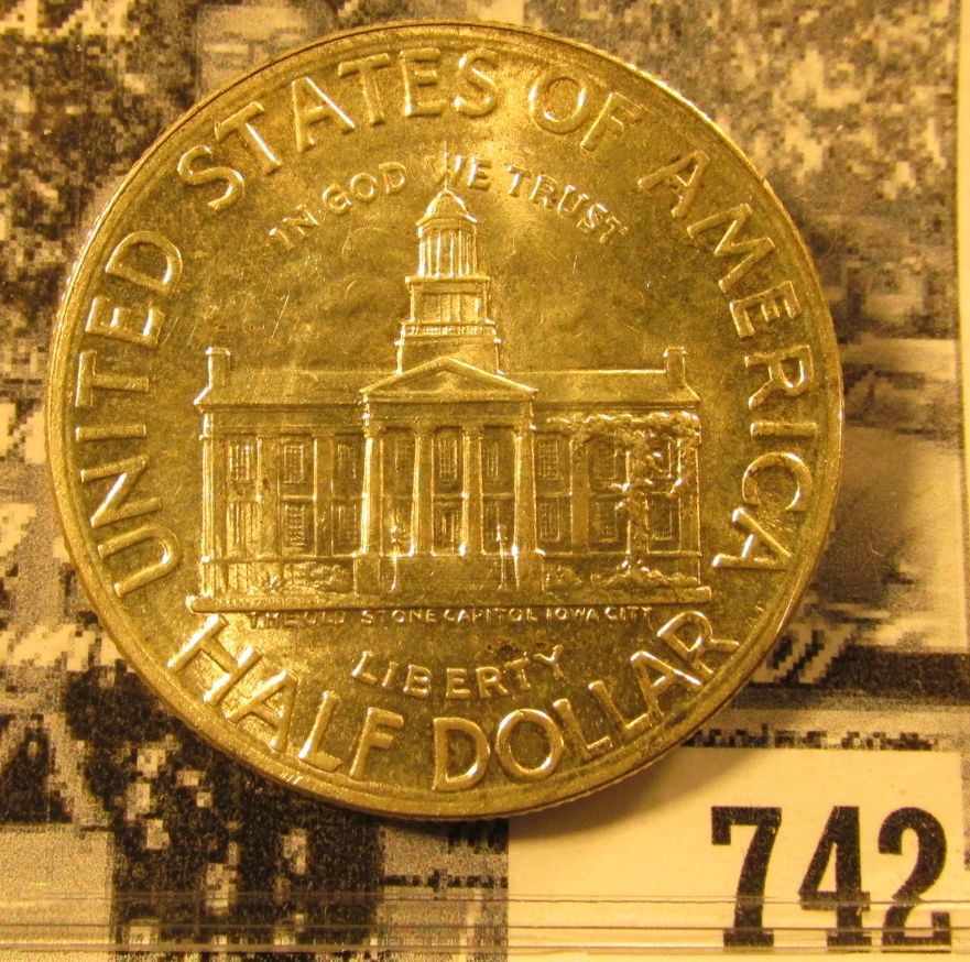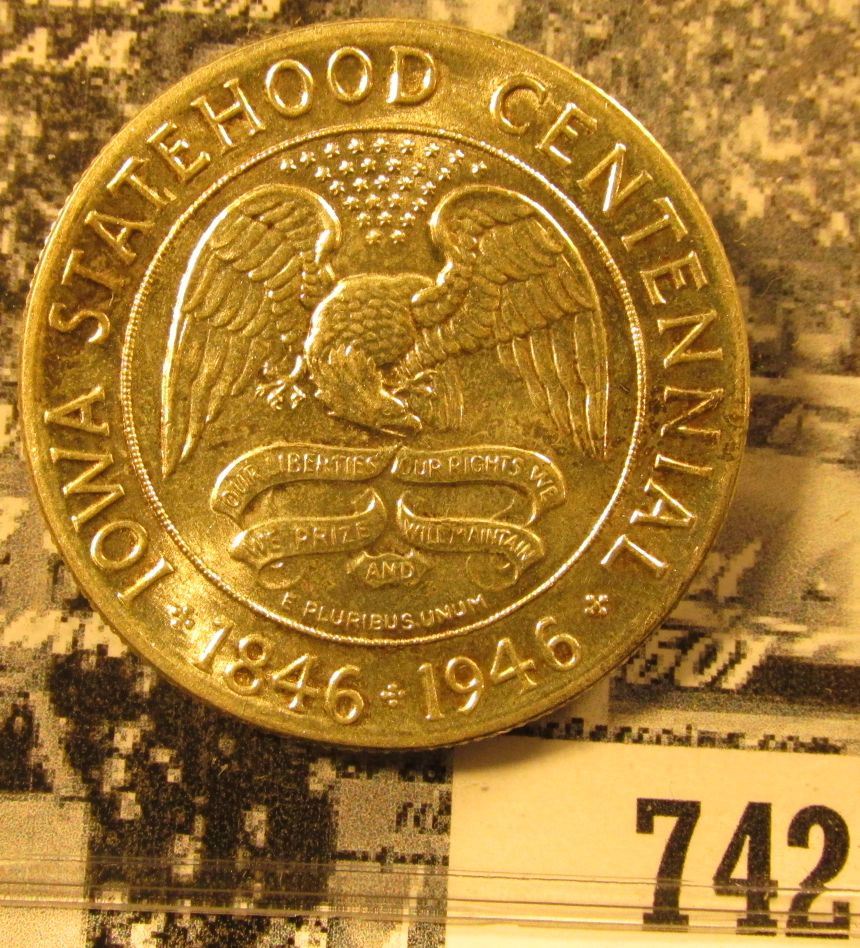 1846-1946 Iowa Statehood Commemorative Half Dollar, Very attractive AU+.