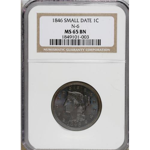 1846 1C Small Date MS65 Brown NGC. N-6, R.1. Grellman