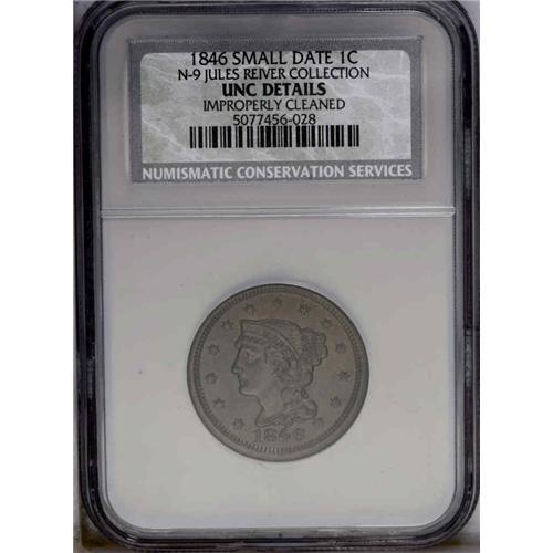 1846 1C Small Date. N-9, R.2--Improperly Cleaned--NCS. 1846[1C] Small Date. N-9, R.2--Improperly Cle