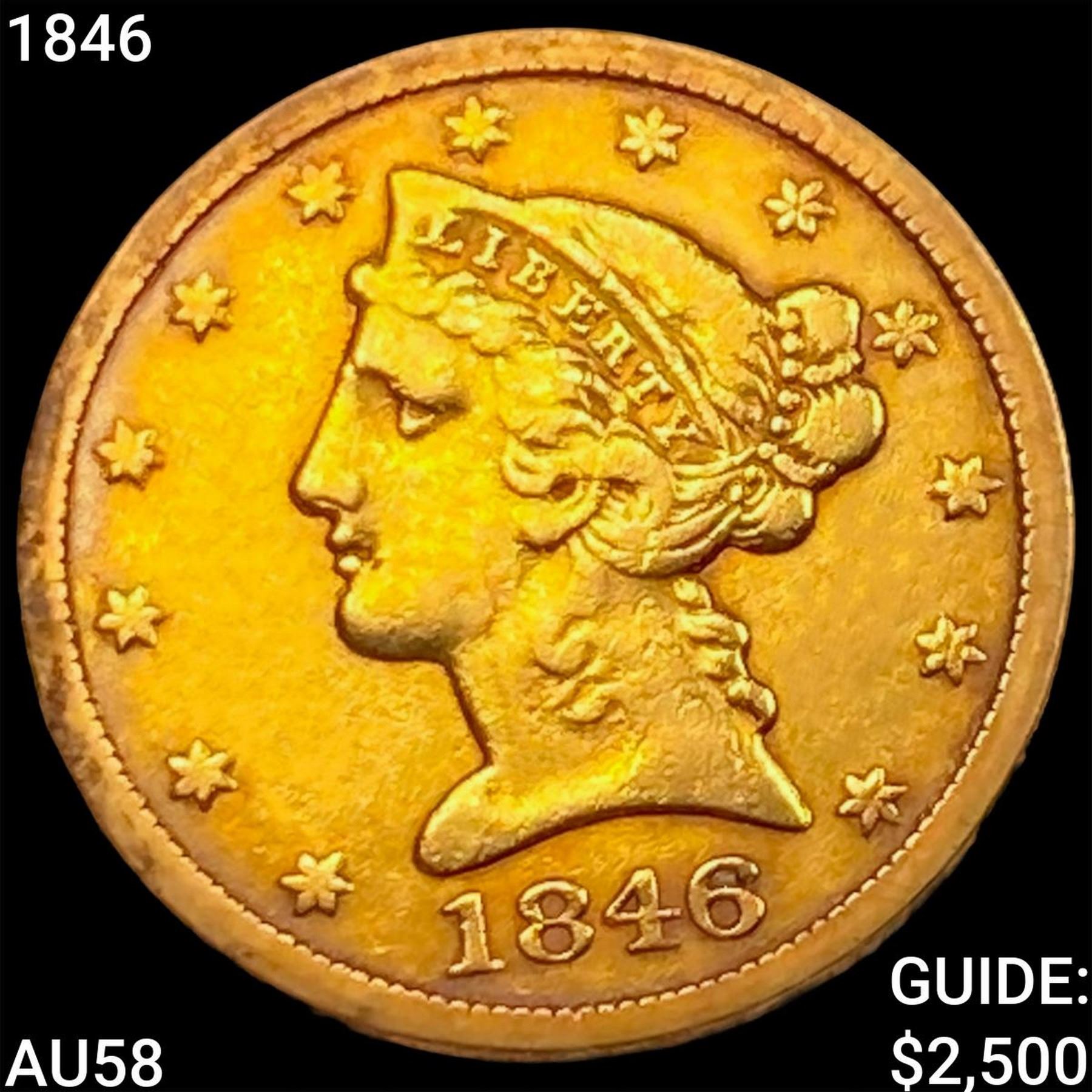 1846 $5 Gold Half Eagle CHOICE AU
