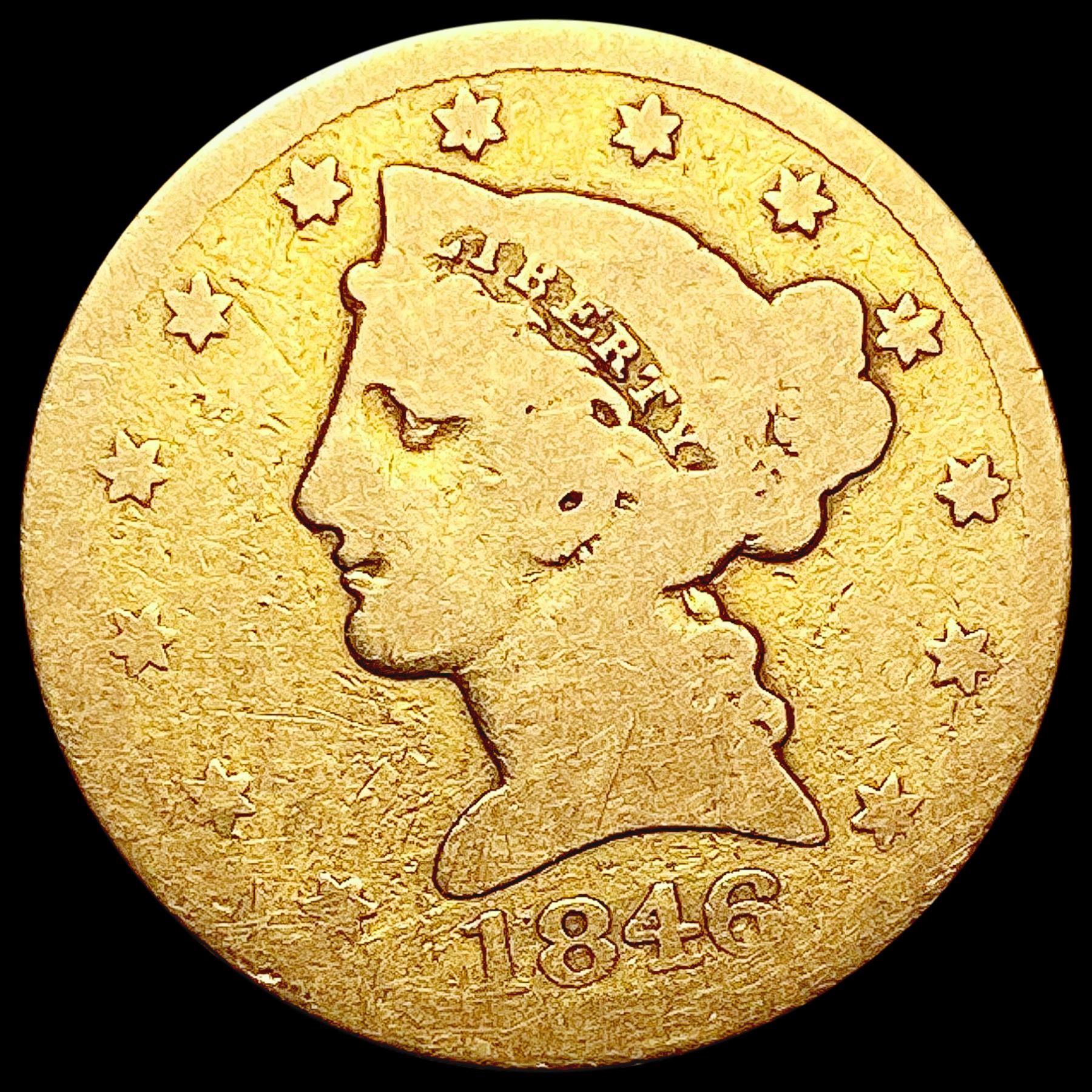 1846 $5 Gold Half Eagle NICELY CIRCULATED